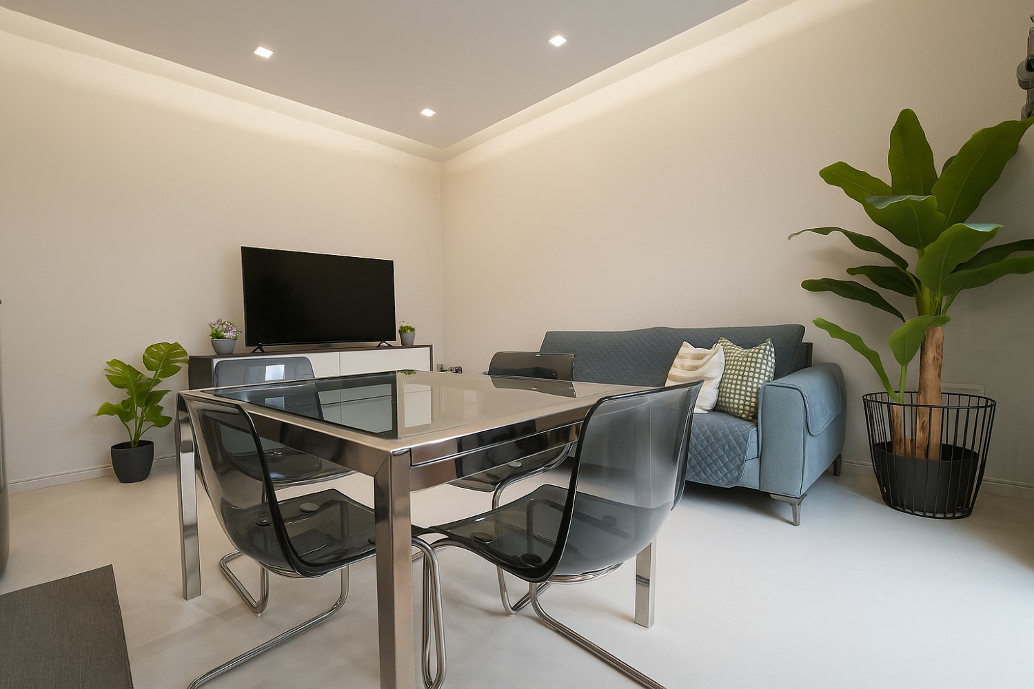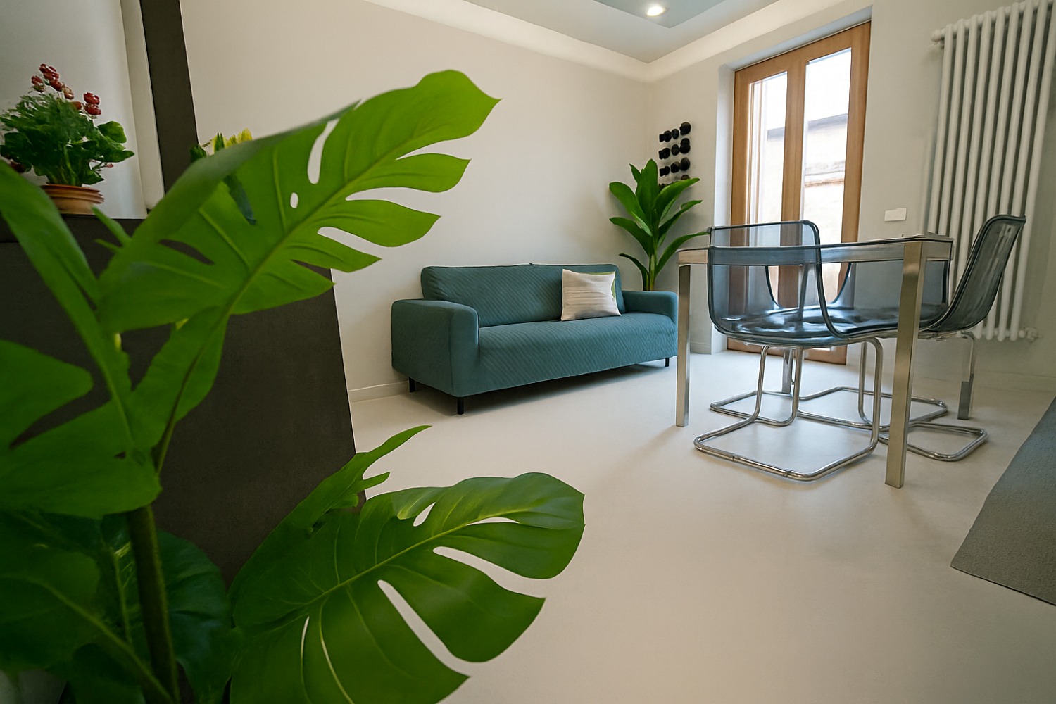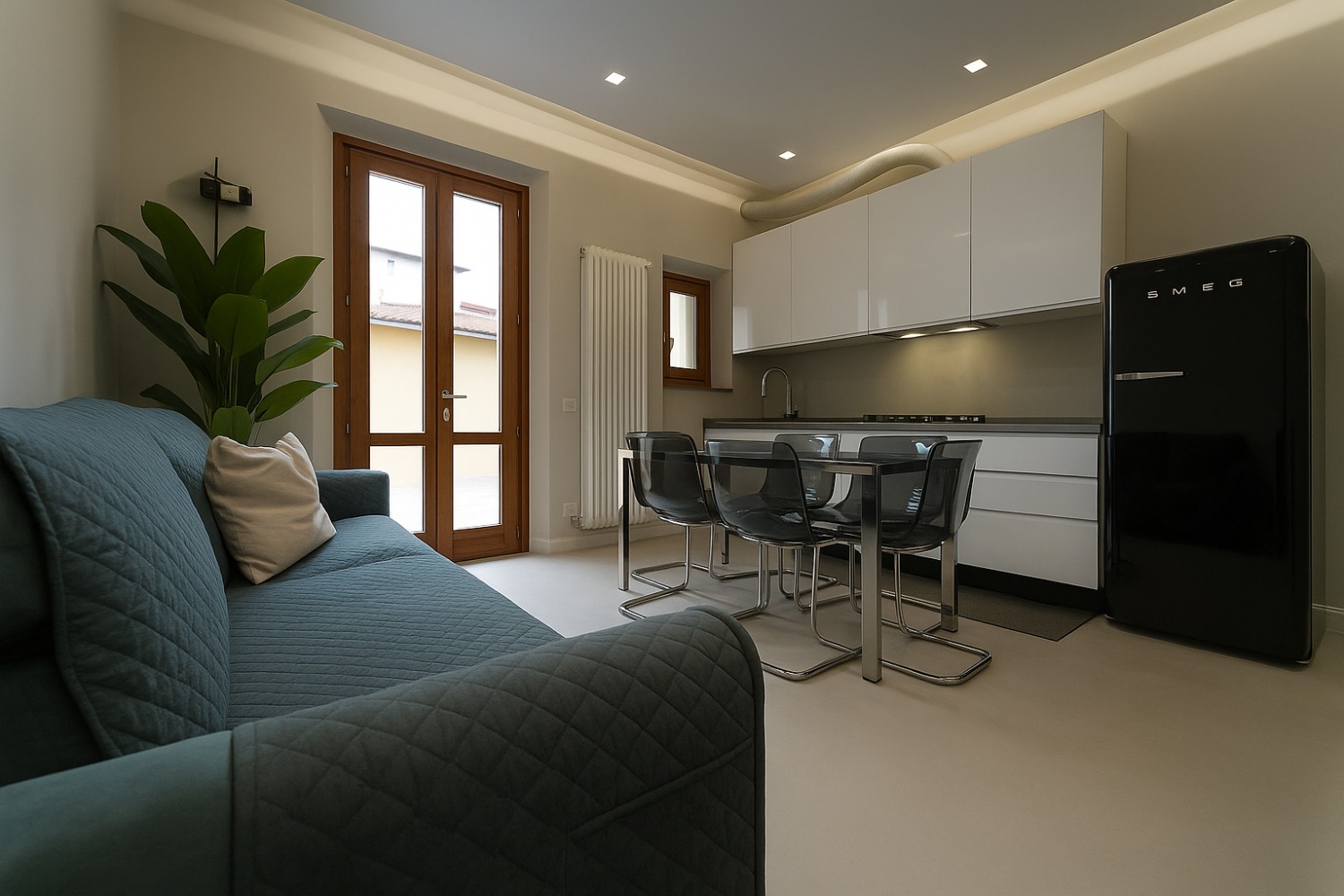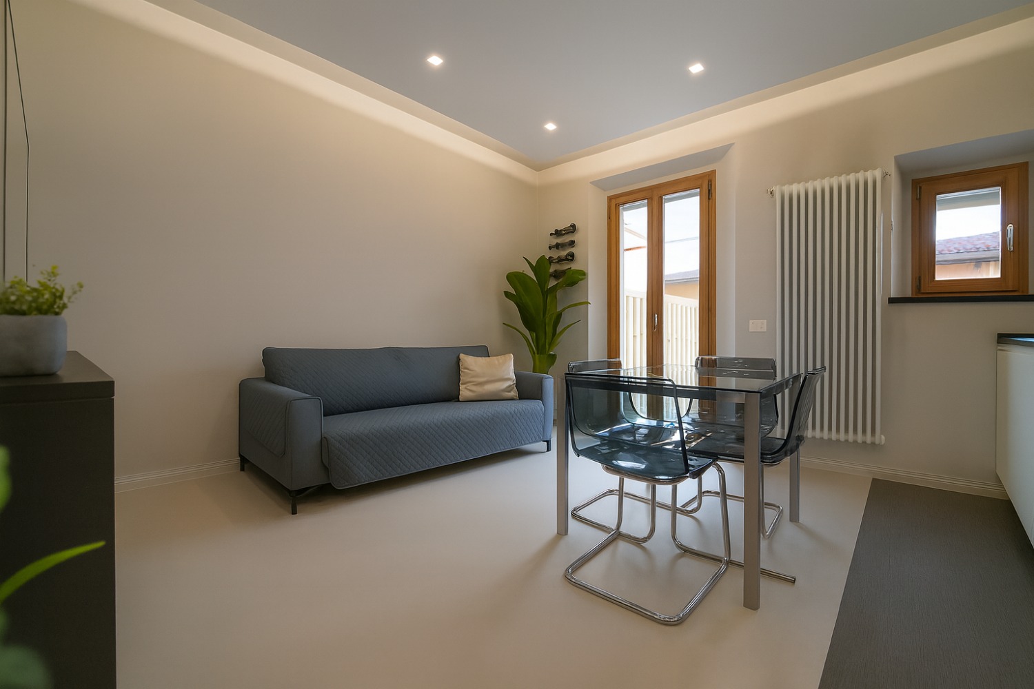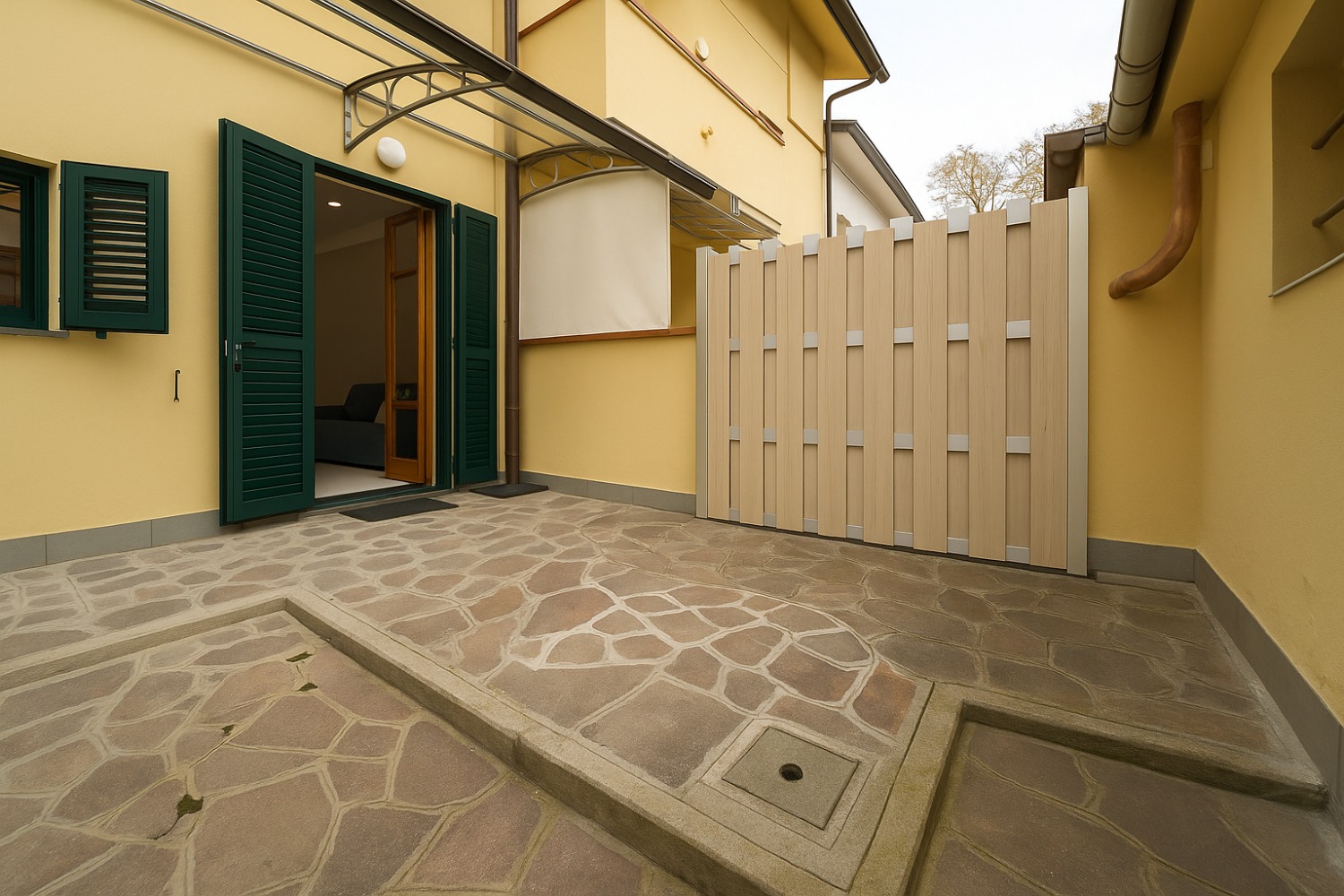 Bilocale piano terra con ingresso indipendente, ristrutturato in stile moderno con spazi esterni privati
