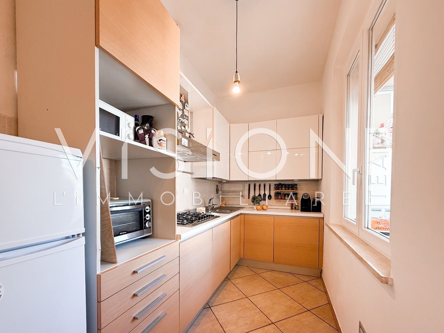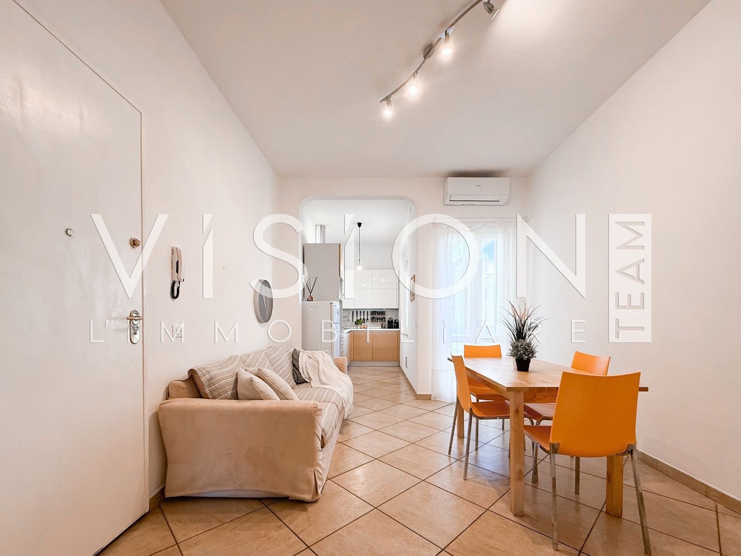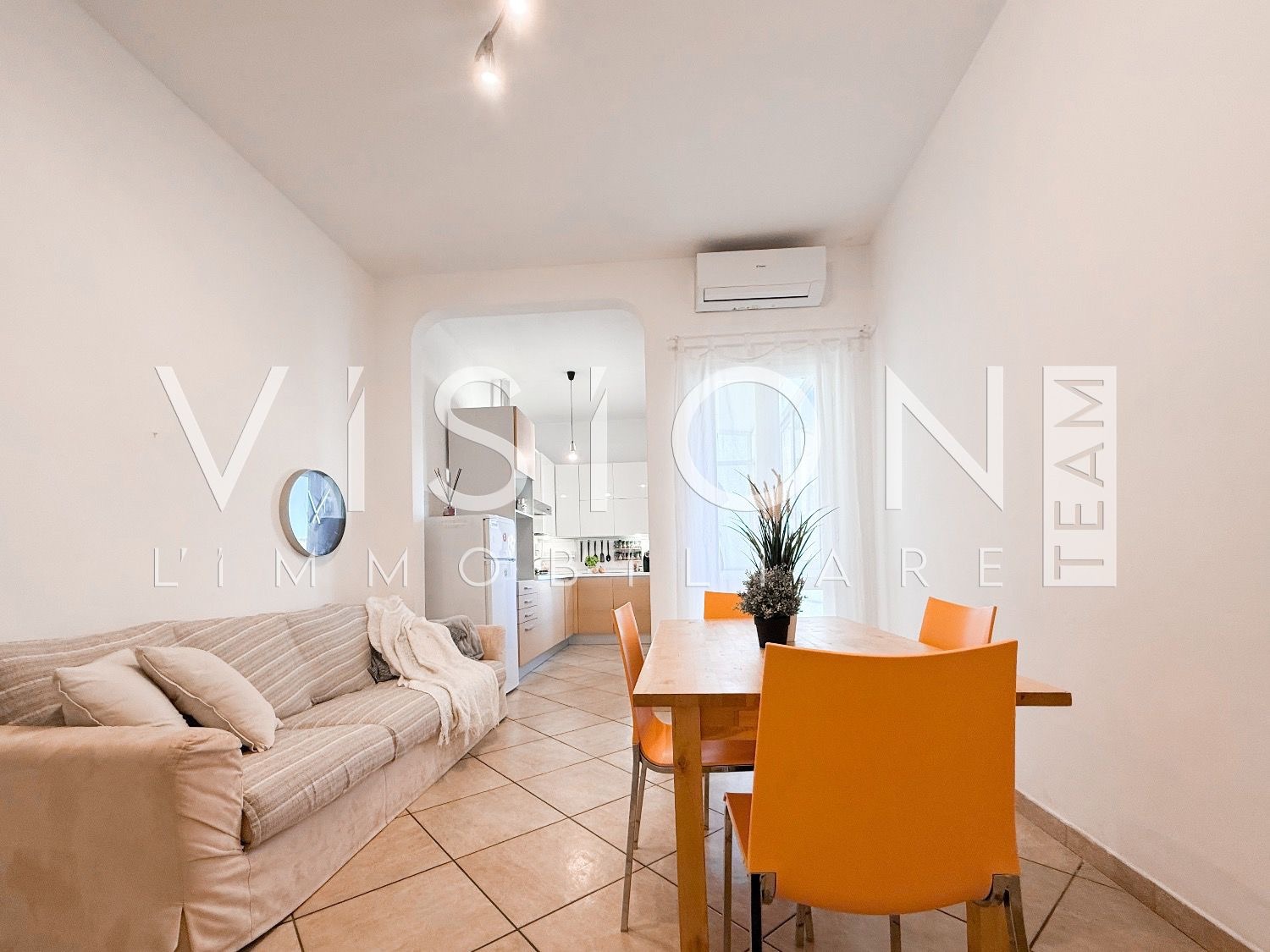 L’abitazione si distingue per la chiara divisione tra zona giorno e zona notte: l’ingresso si apre su una confortevole zona giorno con angolo cottura e accesso alla terrazza riservata, dotata di zona lavanderia e affaccio sulla corte interna condominiale.