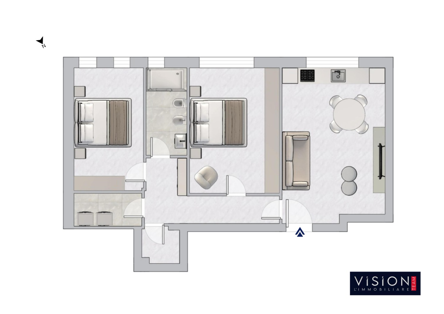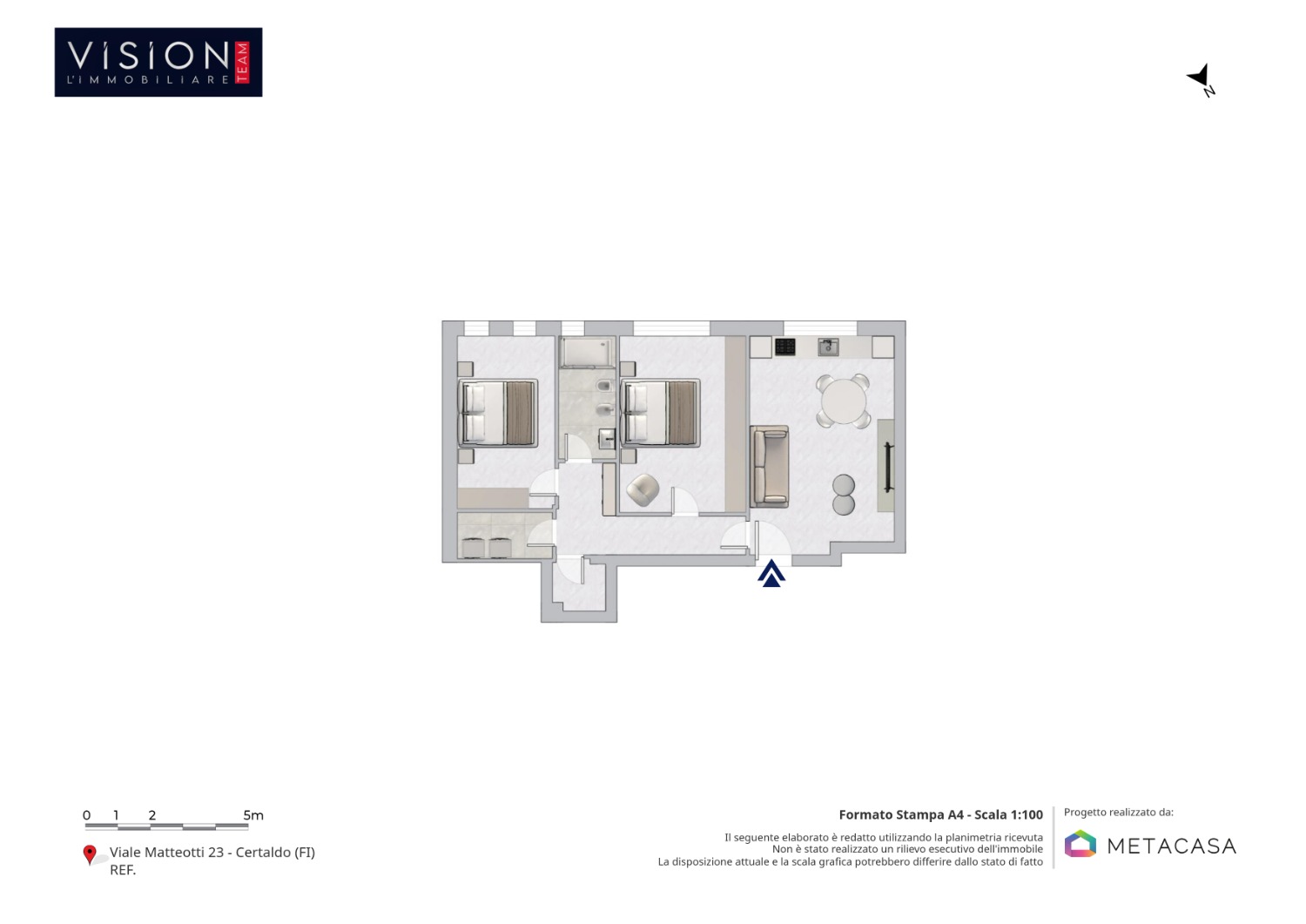 Le foto sono reali. L’arredamento presente nelle immagini è una simulazione in 3D realistico, utile per valorizzare gli spazi e aiutare a immaginare la casa arredata.