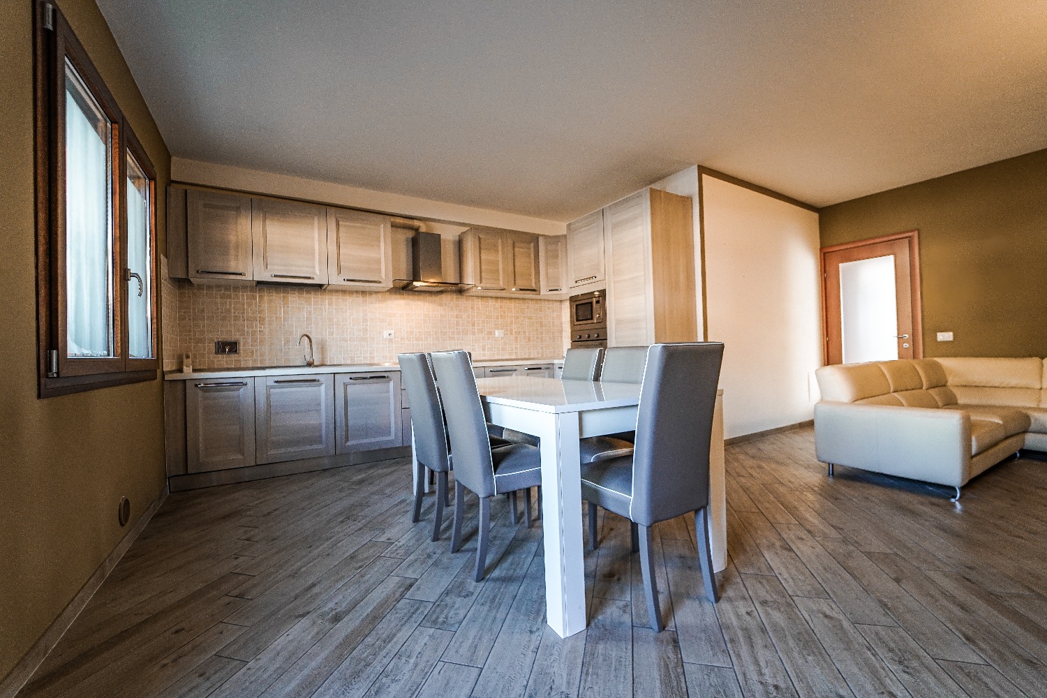 L’immobile, situato al piano terra di un contesto residenziale curato, si presenta in condizioni impeccabili sia esternamente che internamente. All’ingresso si viene accolti da un luminoso e spazioso open space che integra cucina, zona pranzo e soggiorno, creando un ambiente moderno e funzionale.
