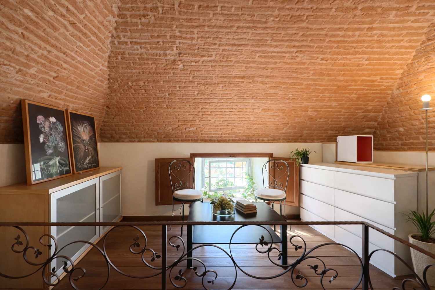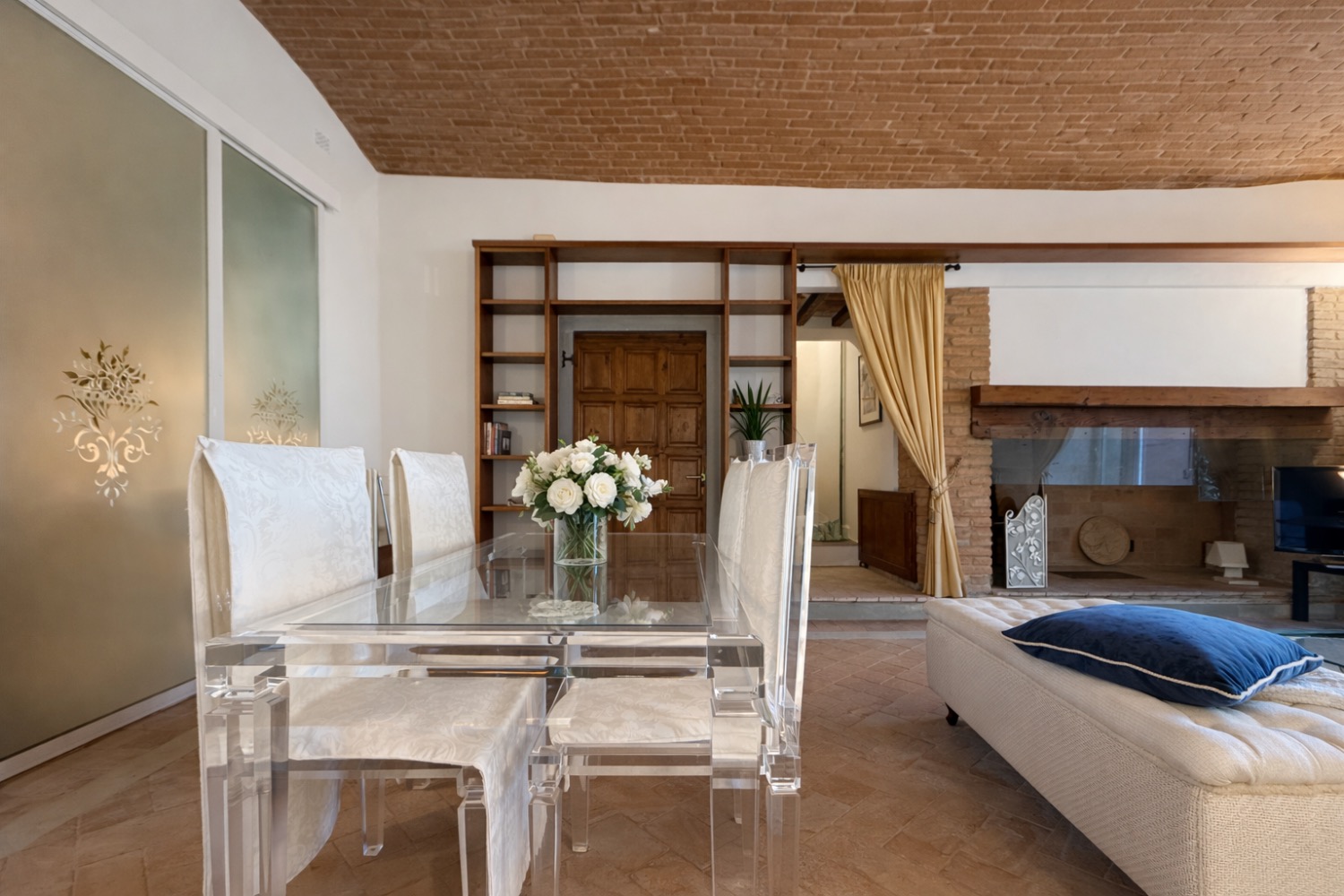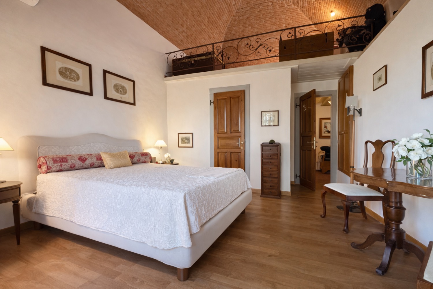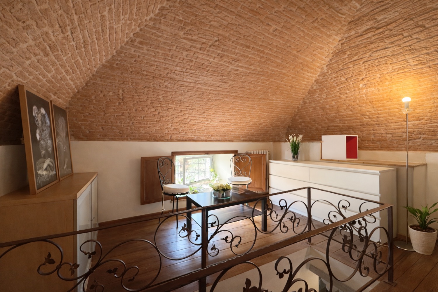 La proprietà si sviluppa su due livelli e coniuga il valore storico dell’architettura toscana con una distribuzione interna funzionale e ben equilibrata. Al piano terra si apre una zona giorno accogliente con camino originale restaurato, oltre a servizio e ripostiglio. Al piano superiore trovano spazio due camere, doppi servizi e uno studio su soppalco affacciato sulla camera matrimoniale, soluzione architettonica che valorizza volumetrie e luminosità.