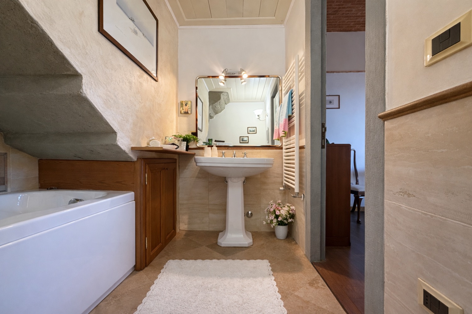 Nel 2000 un accurato restauro conservativo ha riportato a nuova vita l’antica villa del ‘500, valorizzandone l’identità storica e integrando soluzioni abitative moderne. All’interno delle originarie scuderie è stata realizzata questa elegante porzione di villa su due livelli, dove il fascino dell’architettura toscana si fonde armoniosamente con il comfort contemporaneo.