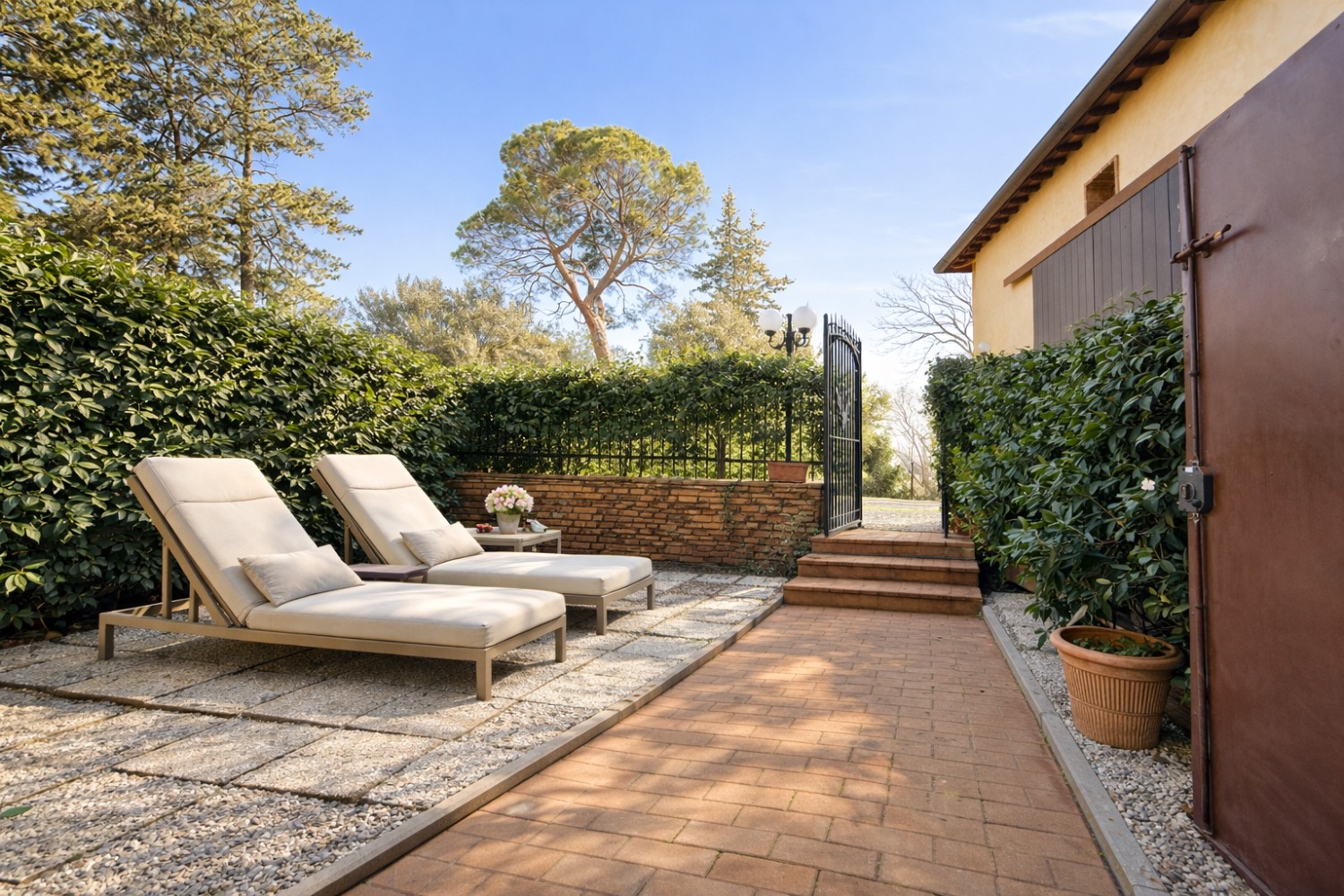 Completano la proprietà un resede esterno esclusivo, ideale per momenti di relax, e posto auto assegnato all’interno dell’area privata. L’accesso avviene tramite circa un chilometro di strada bianca ben mantenuta che conduce a un contesto protetto da cancello automatico, interamente delimitato e curato.