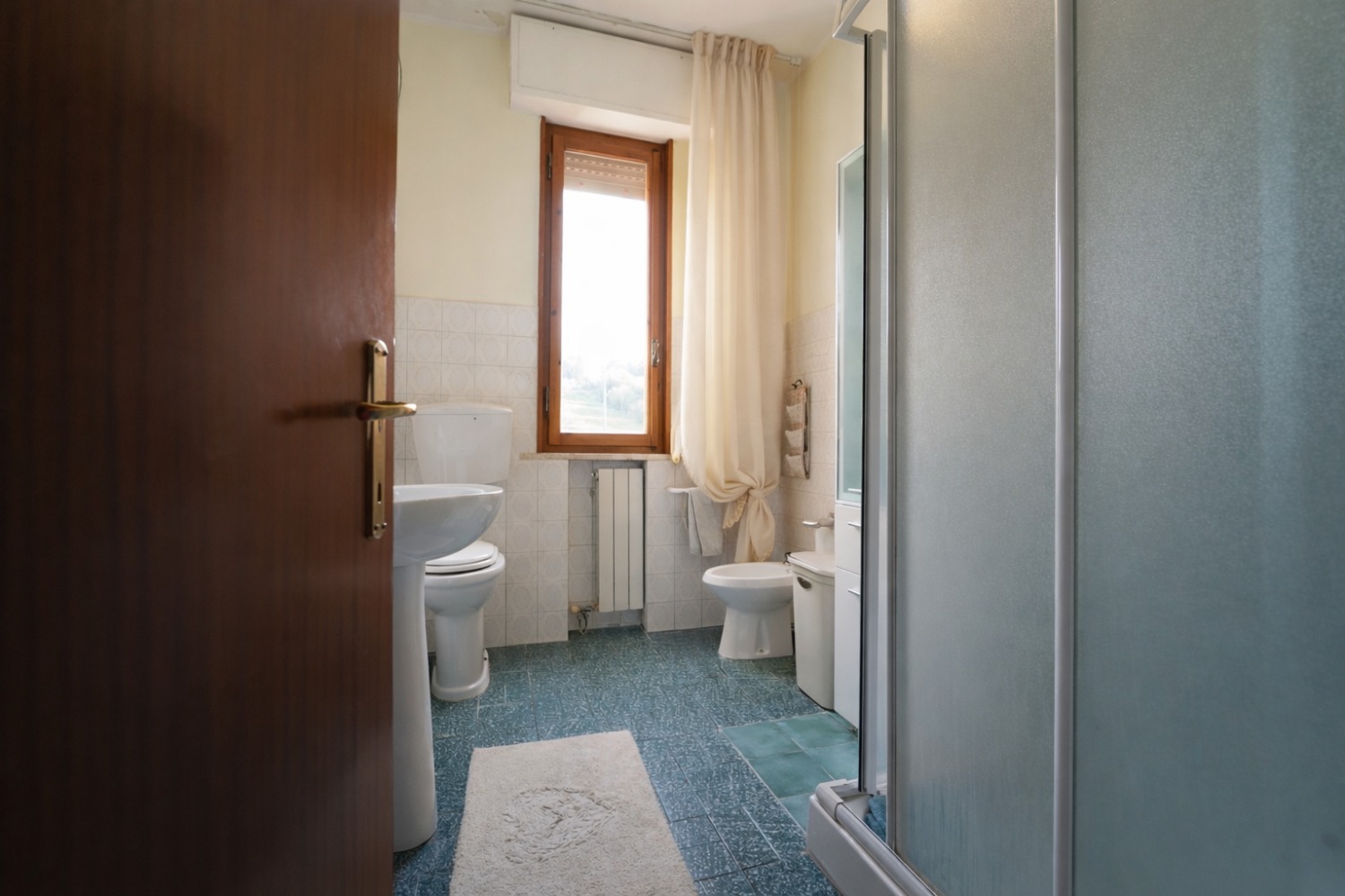 La zona notte, separata dalla zona giorno, accoglie due camere matrimoniali, una camera singola e un bagno finestrato con doccia, ideale sia per famiglie sia per chi necessita di uno spazio aggiuntivo per lavoro o studio.