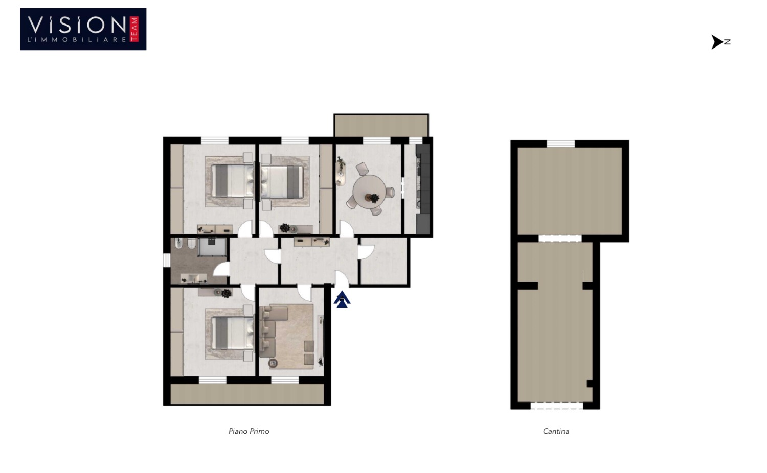 L’abitazione si sviluppa interamente al primo piano. L’ingresso accompagna in ambienti distinti e ben organizzati, dove troviamo il soggiorno, la sala da pranzo e il cucinotto. Dalla zona pranzo si accede ad un comodo balcone, un ambiente piacevole da vivere nei momenti di pausa e relax. Completa la zona giorno un comodo ripostiglio, elemento sempre più indispensabile per mantenere ordine e praticità.
