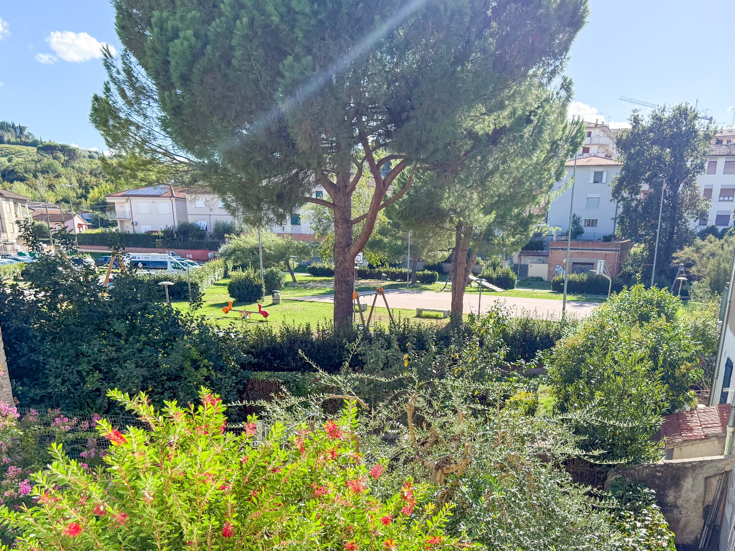 L'abitazione si apre su un disimpegno che conduce a un ampio doppio salone con affaccio nel verde, una cucina abitabile, una spaziosa camera matrimoniale e un bagno. La disposizione interna e le dimensioni generose offrono la possibilità di realizzare una seconda camera, adattando l'immobile alle proprie esigenze abitative.