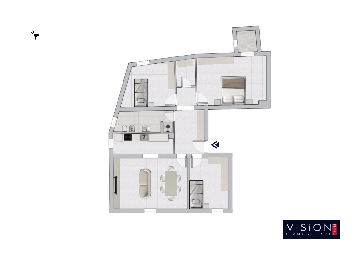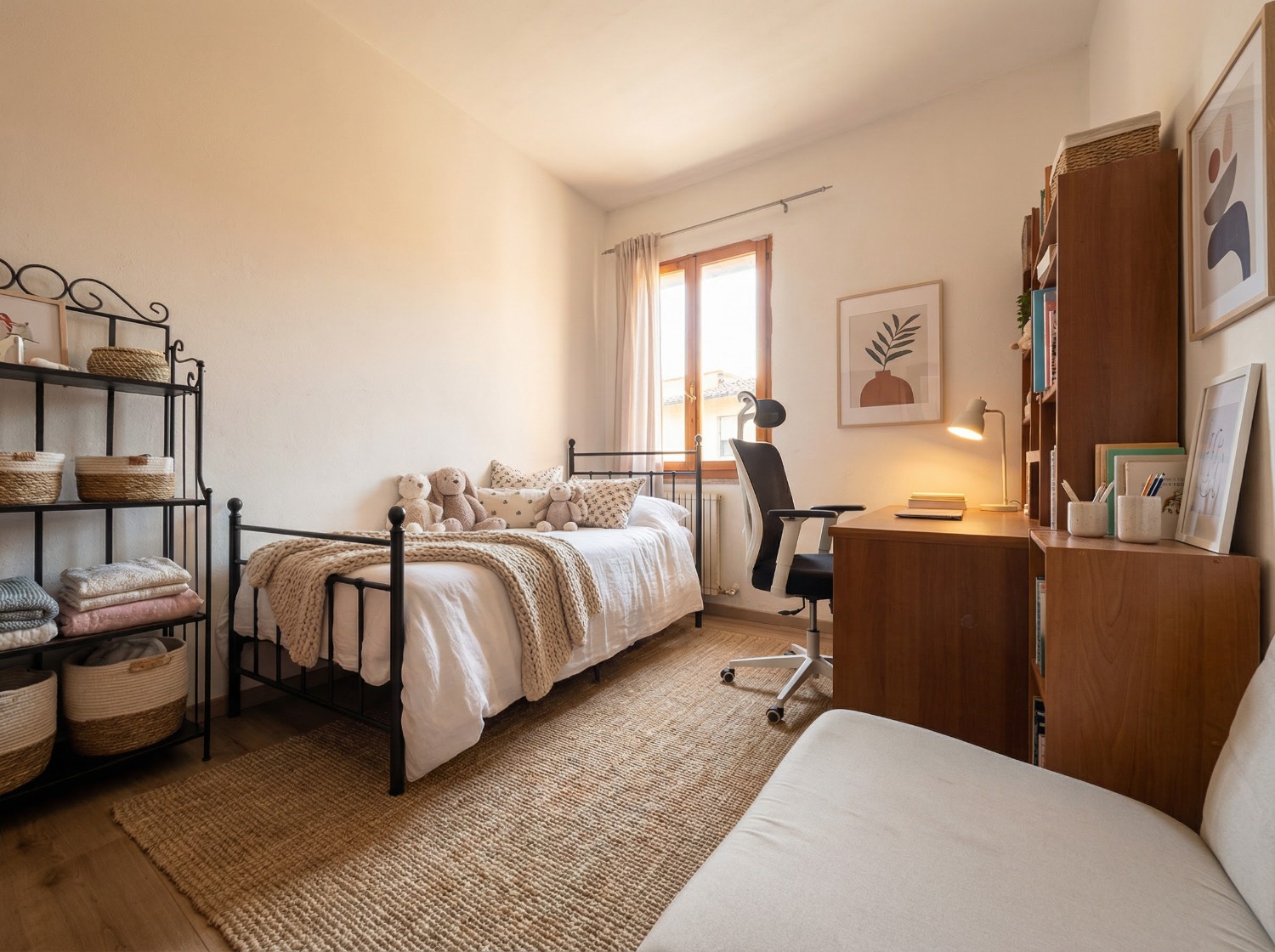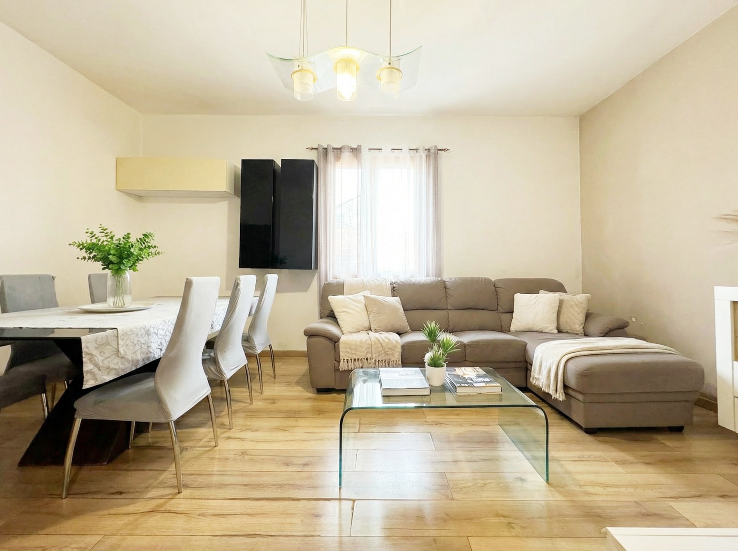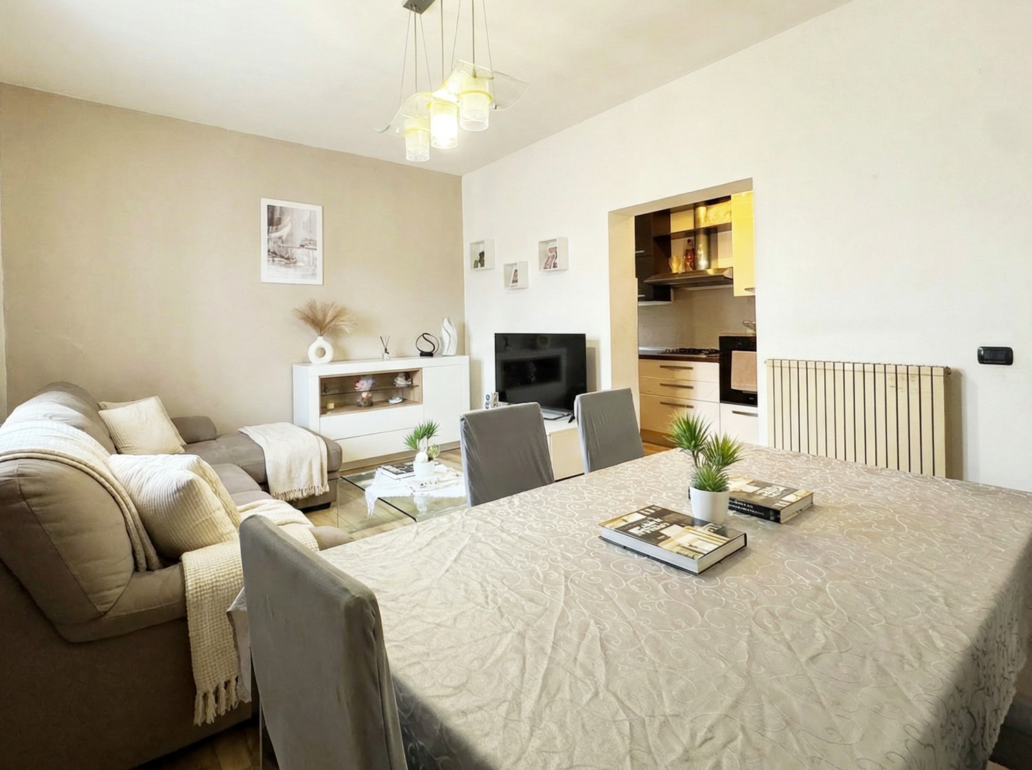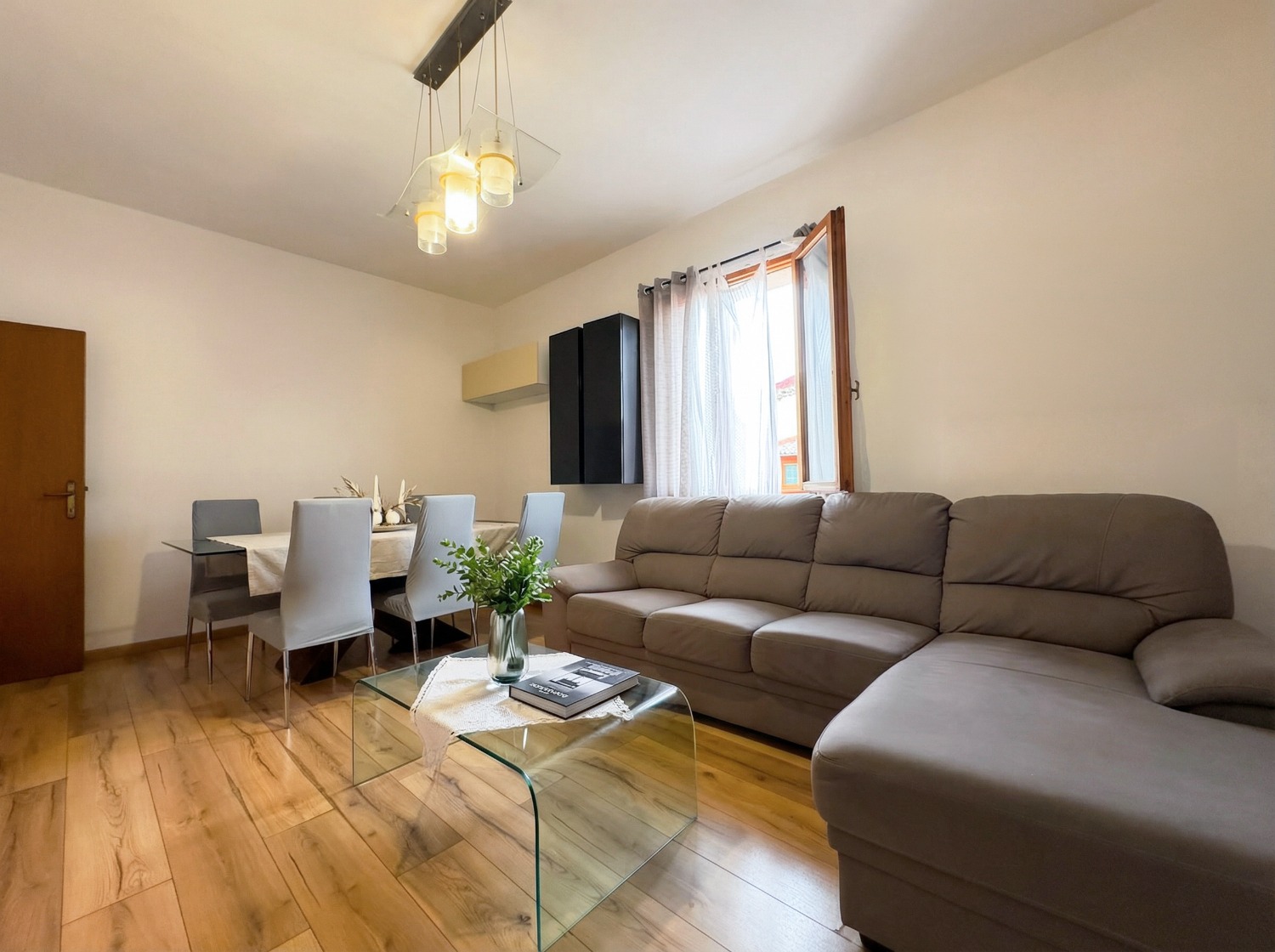 L’ingresso conduce alla zona giorno luminosa, con soggiorno e sala da pranzo ben distribuiti, ambienti accoglienti e funzionali per la vita quotidiana. La cucina è separata e organizzata in modo pratico. La zona notte comprende tre camere da letto di comoda metratura, di cui una matrimoniale e due singole, oltre a bagno finestrato.