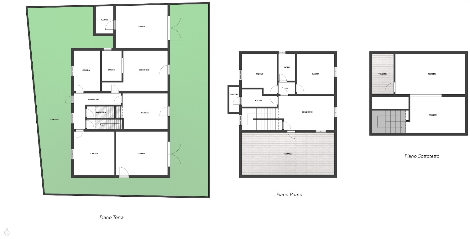 A completare la proprietà due garage doppi, pratici e funzionali, e un ampio sottotetto con ulteriori spazi sfruttabili come ripostiglio o studio.