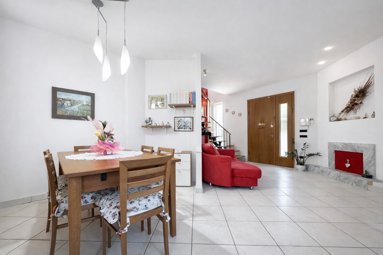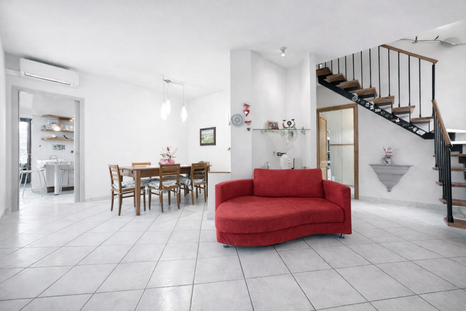 L’abitazione principale si sviluppa al piano primo e si presenta in ottimo stato manutentivo, pronta per essere abitata fin da subito. Gli ambienti sono ampi, luminosi e ben distribuiti: la zona giorno è composta da un accogliente soggiorno separato dalla cucina abitabile, creando spazi funzionali e vivibili per tutta la famiglia.