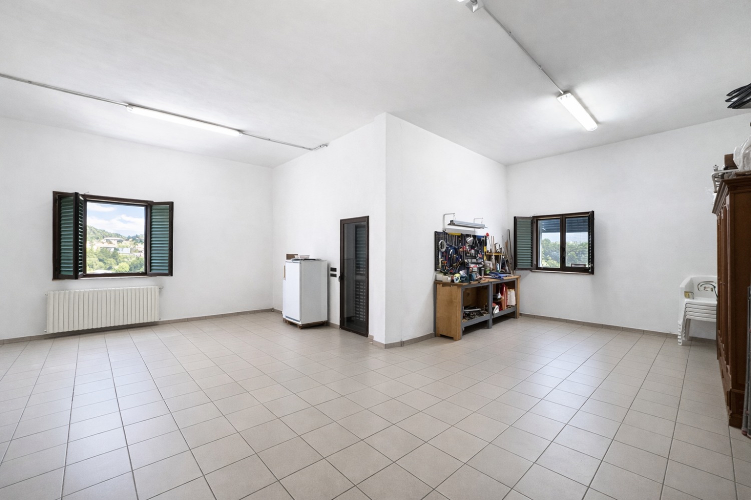 Al piano terra completa la proprietà un vero punto di forza: un garage di circa 100 mq, perfetto non solo come rimessa ma anche come taverna, zona hobby o spazio multifunzionale, oltre a un ulteriore bagno.