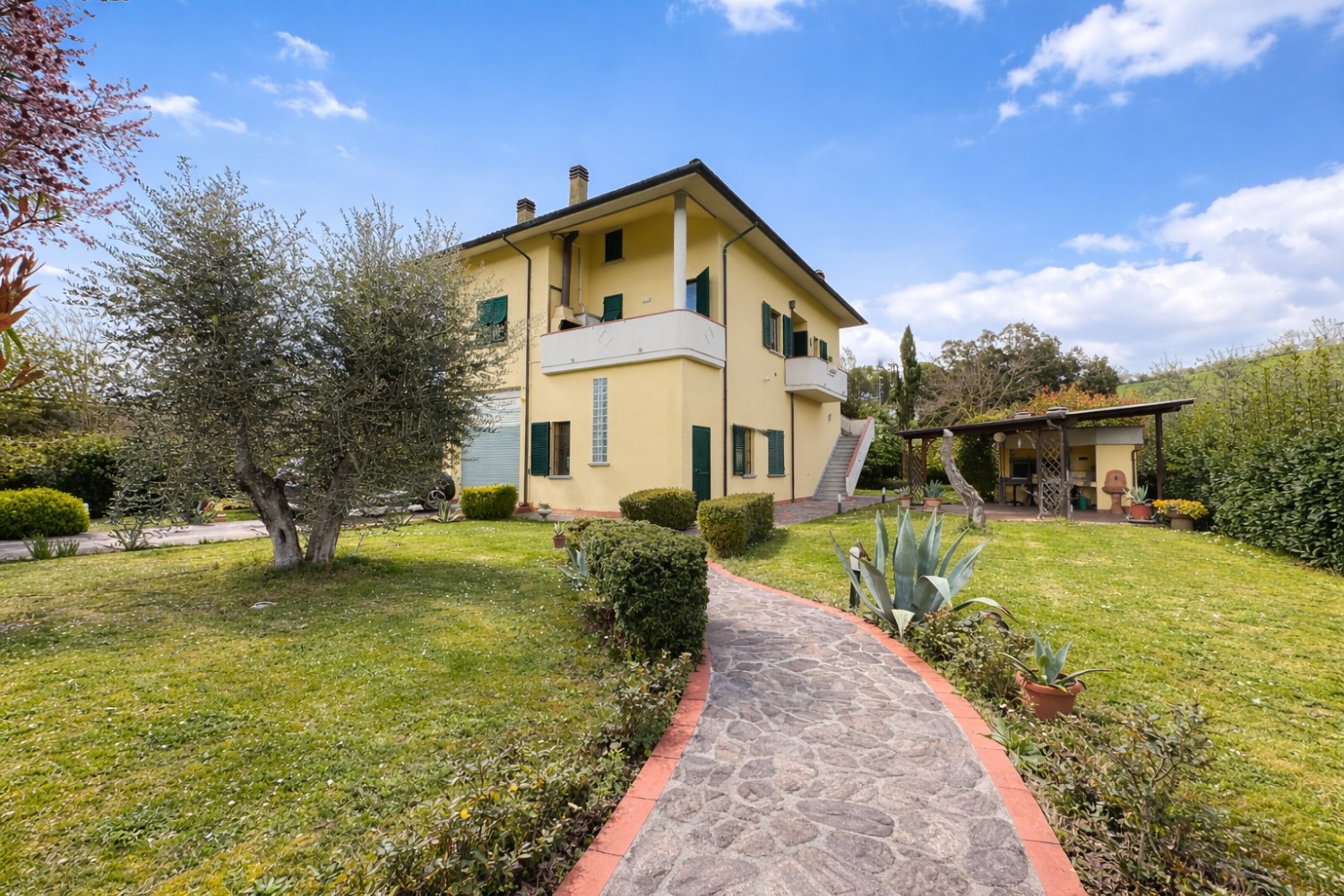 La proprietà è circondata da un curato giardino di circa 400 mq, perfetto per vivere l’esterno in totale relax, oltre a terreno di circa 2.500 mq, ideale per chi desidera uno sfogo verde, un piccolo orto o semplicemente più respiro intorno a casa.