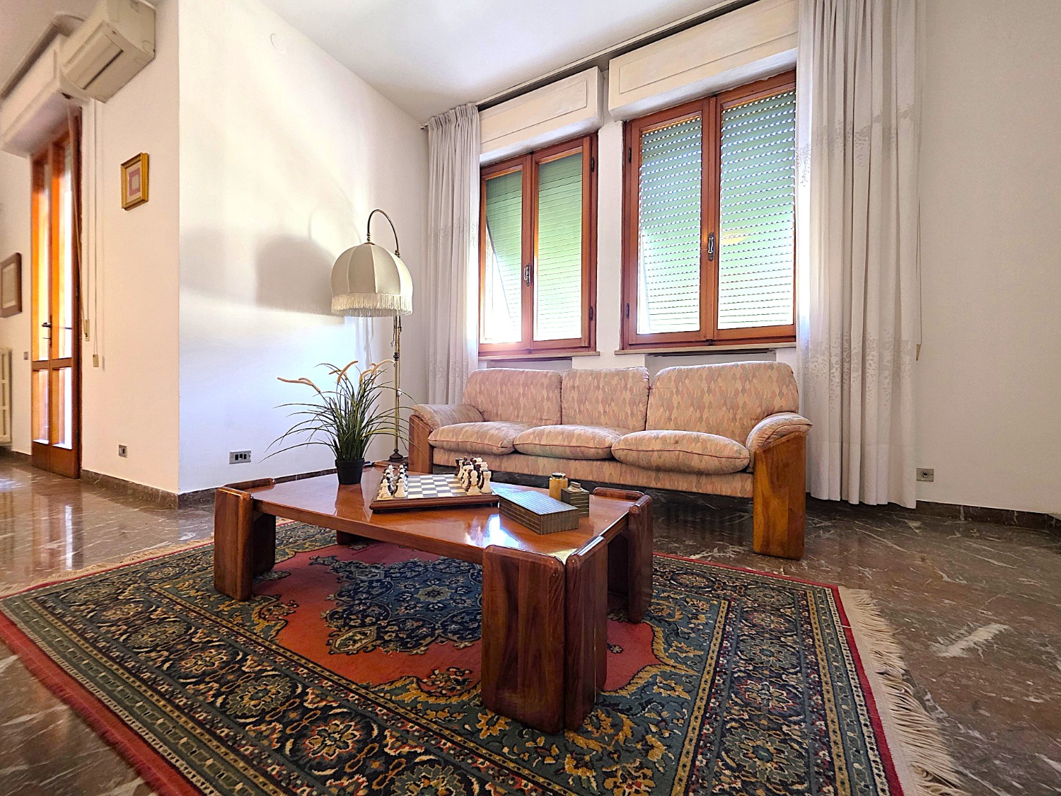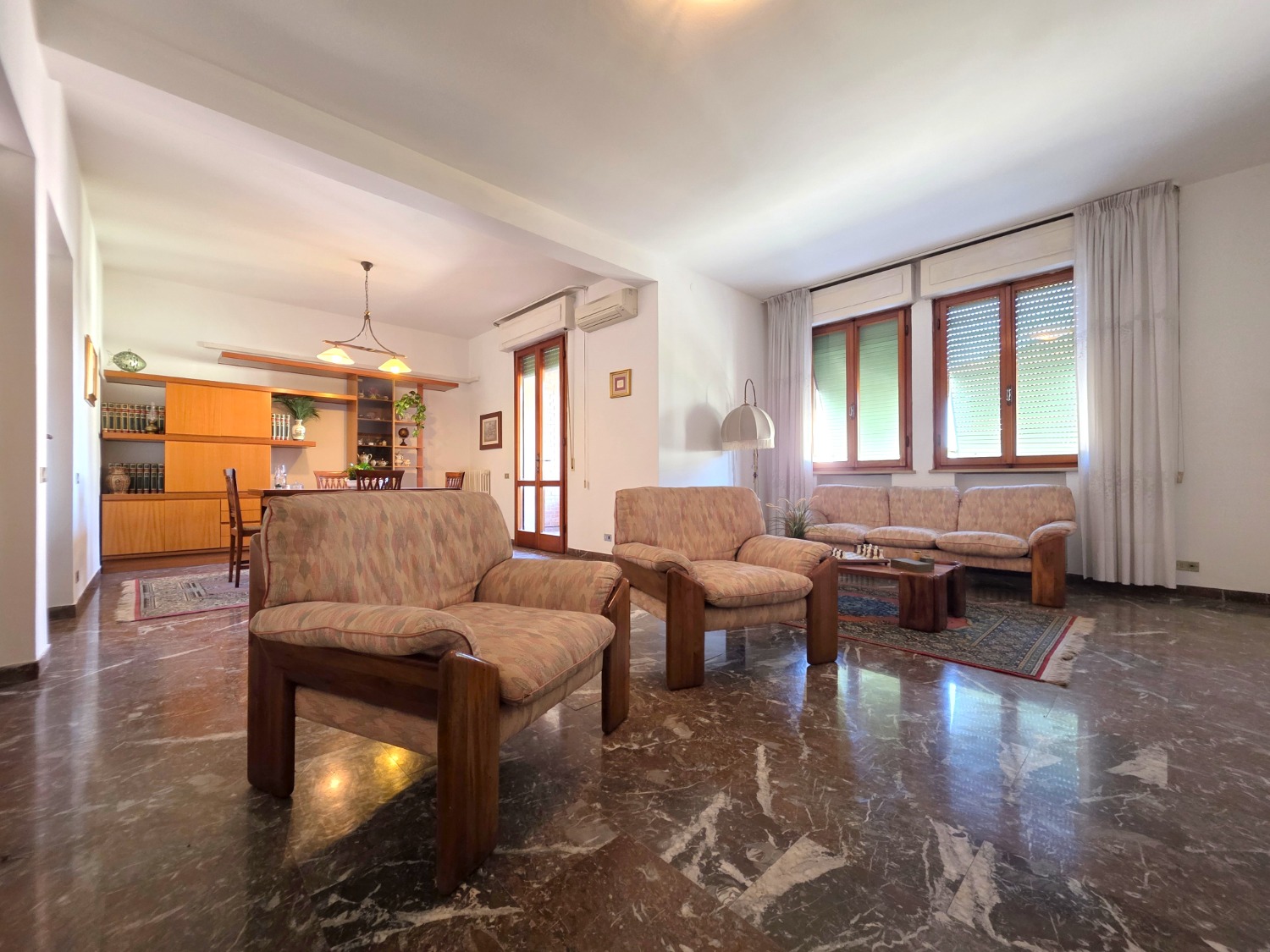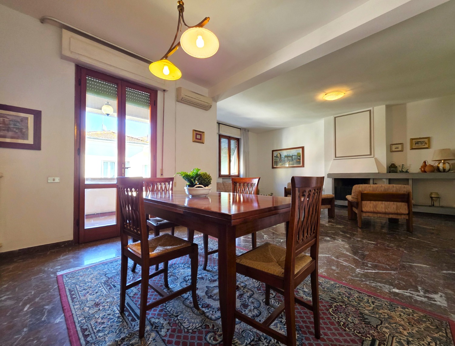 L'abitazione si apre su ambienti ariosi e ben distribuiti: un ingresso accogliente, un cucinotto separato con sala pranzo, e soprattutto, uno spettacolare salone doppio, il cuore della casa, ideale per ricevere amici o per godersi momenti di relax in famiglia senza sentirsi stretti.
