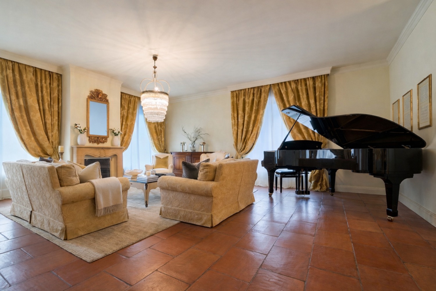Gli ambienti interni si distinguono per l’accurata distribuzione e le finiture di pregio: l’ingresso si apre su un ampio living con camino, perfetto per accogliere e vivere momenti di convivialità, affiancato dalla zona pranzo con accesso diretto alla loggia e al giardino.