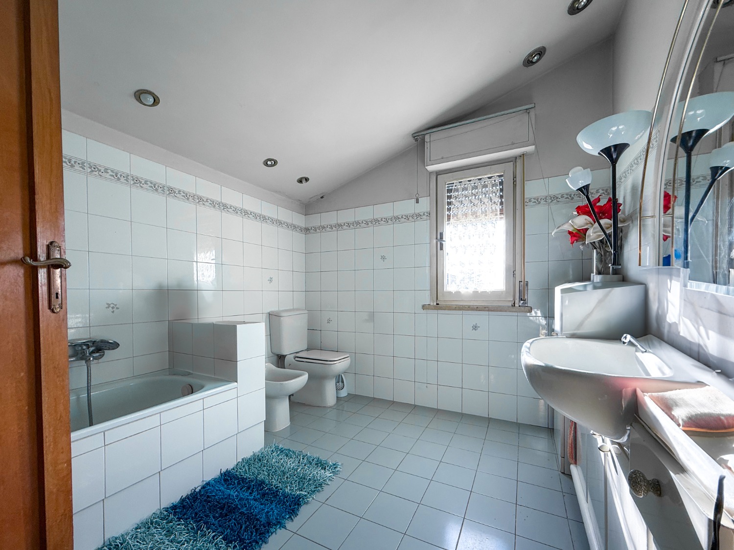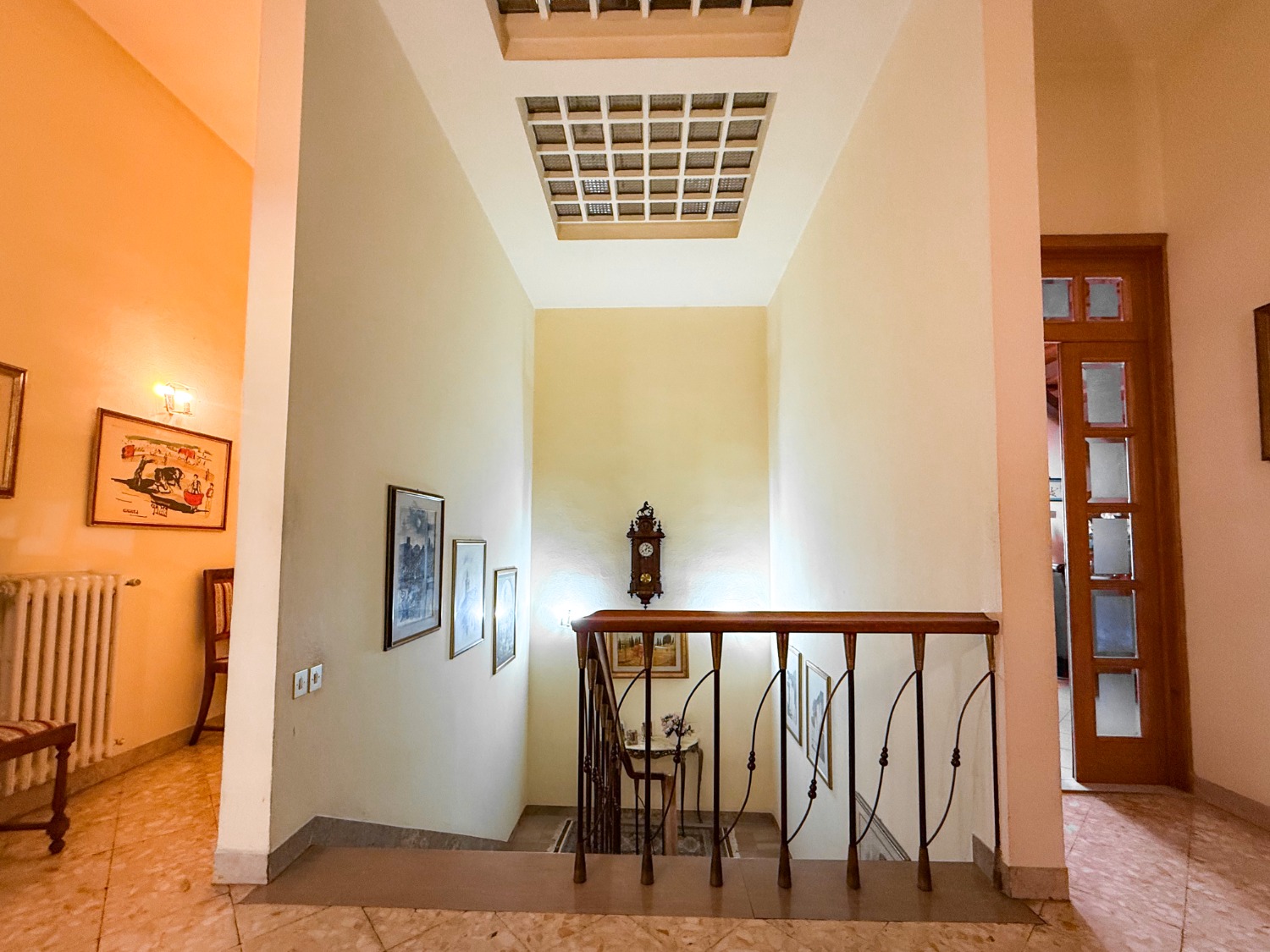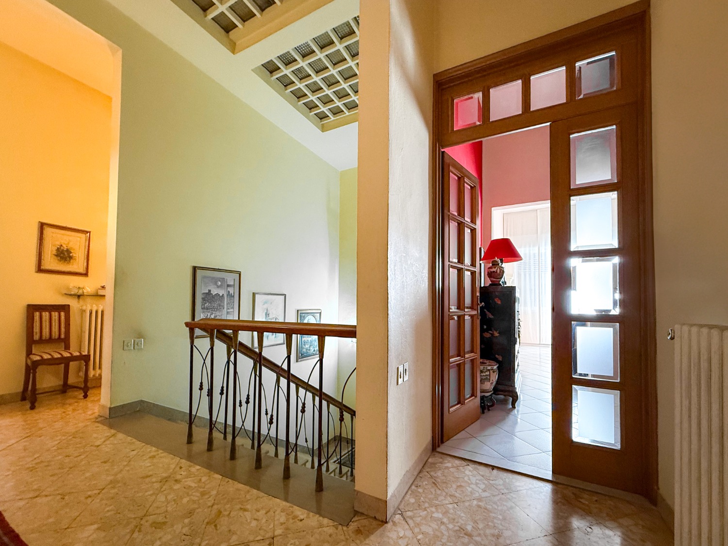L’ingresso è completamente indipendente e conduce al primo piano, dove si sviluppa l’intero corpo principale dell’abitazione. Le due unità risultano attualmente comunicanti, ma già predisposte per essere vissute anche separatamente grazie al disimpegno a comune. Al primo piano si apre il primo appartamento, un ambiente accogliente composto da cucina con zona pranzo, soggiorno, due camere e un bagno. Sullo stesso livello, l’appartamento di destra offre una zona giorno composta da cucina e soggiorno, collegata al piano sottotetto dove trovano spazio due camere, una delle quali con accesso a un gradevole terrazzo a tasca, oltre a uno studio e un bagno.